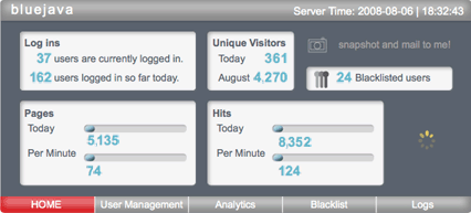 Conductor gives you a "live" dashboard view into to your site's activity. Watch as users log in and access pages and view real-time statistics - including any custom business metrics you have defined.